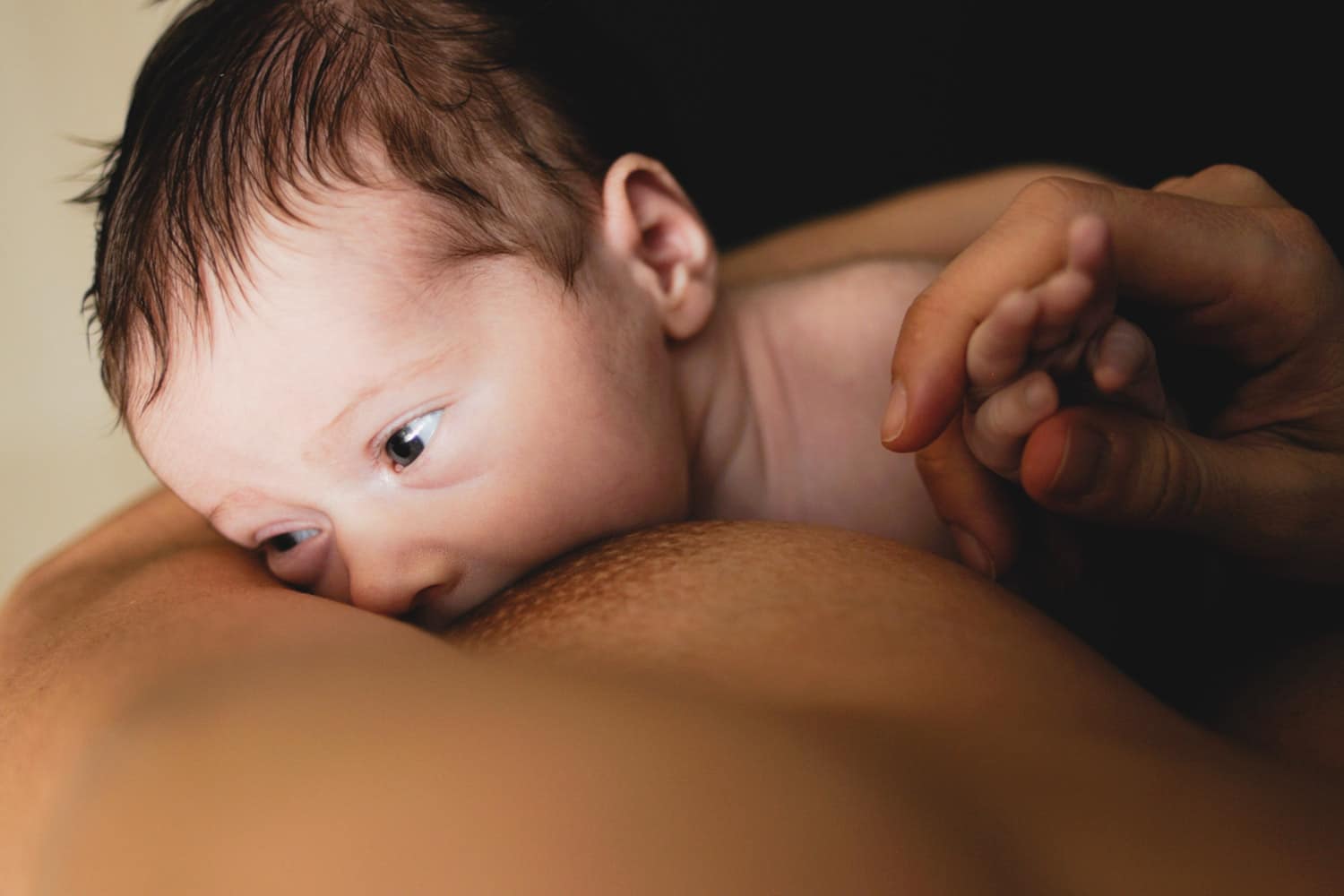 • Asegura una técnica y posición correcta. Ves cambiando de postura para facilitar el vaciado de todo el pecho y conseguir una buena estimulación y su consiguiente producción. Olvida el reloj y no tengas prisa, sobre todo al principio, hasta que aprenda a vaciar el pecho. Recuerda también el buen agarre del bebé al pecho, la boca bien abierta y el pezón y la aureola bien adentro. El labio inferior evertido y el mentón tocando la piel del pecho.